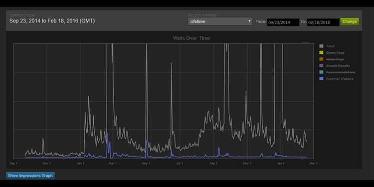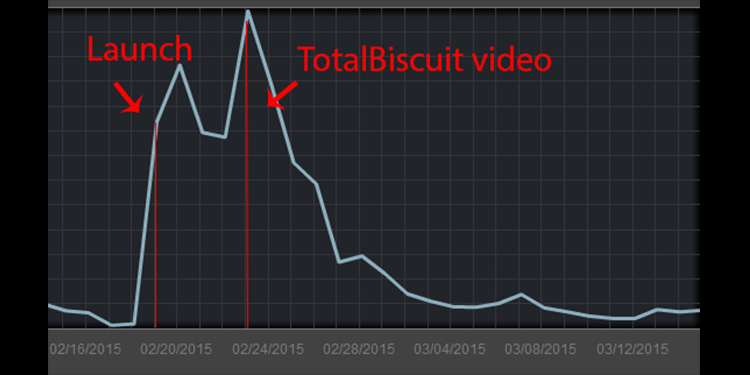 - YouTube coverage too spread out. Due to the fact the game was available to play for over a year before official Steam launch, YouTube and Twitch coverage occurred in smaller chunks over a long period of time and actually seemed to die off a bit before the game even launched. For instance, NerdCubed covered it during greenlight, Markiplier covered it after greenlight but before it was available on Steam, and many other huge channels covered it while it was still in Early Access. If chance or better coordination on my part had made that more concentrated exposure right before and during launch it could have had a much bigger impact.